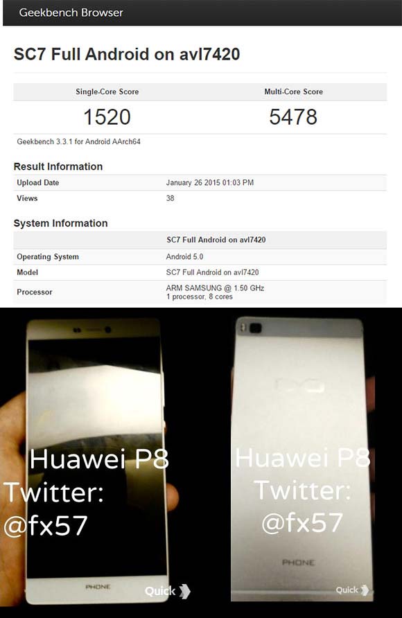 Стала ясна производительность новой системы-на-чипе/кристалле от компании Samsung, плюс появились фото и некоторые спецификации аппарата Huawei P8.