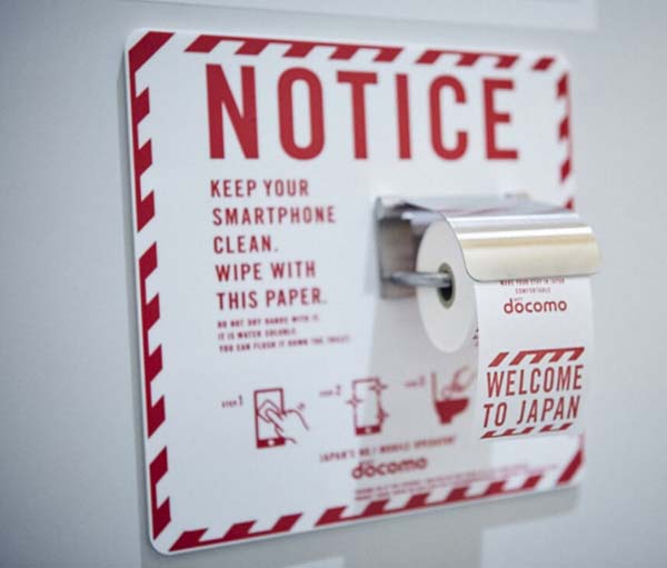 В аэропорту Нарита, что в Японии, в туалетах появились... рулоны бумаги для смартфонов. Выглядит сие так: