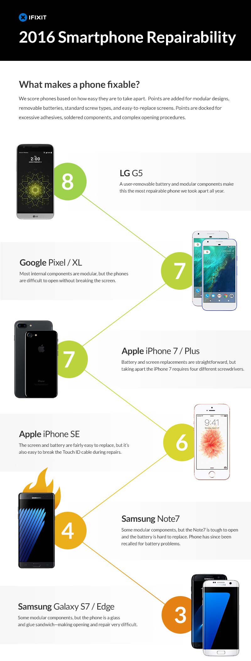 Ресурс iFixIt опубликовал список из шести умных устройств, починка которых или максимально проста, или же наиболее затруднительна. Чем выше оценка, тем легче починить аппарат, смотрим: