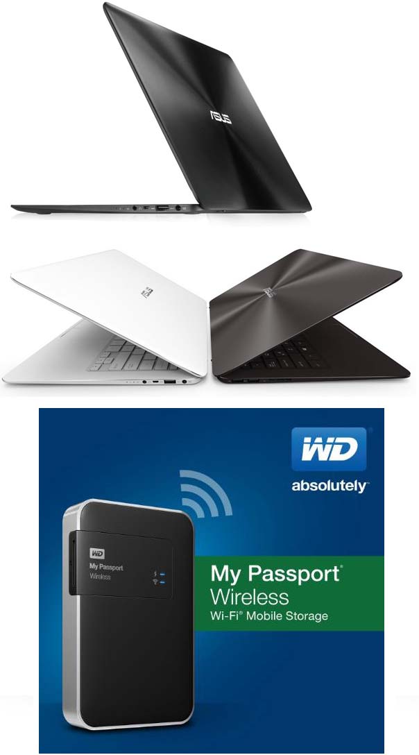Ультрабук ASUS Zenbook UX305 на фото ниже, WD My Passport Wireless сразу под ним