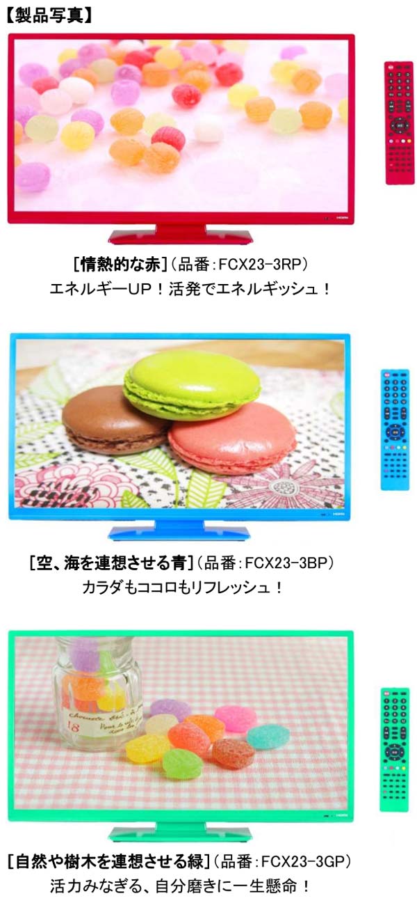 Компания с потрясающим названием Doshisha выпускает изготовленные Orion Electric телевизоры серии TYTTO, данное слово означает "девушка" в финском языке. Агрегаты и вправду созданы для услады глаз представительниц прекрасной половины человечества, корпуса аппаратов FCX23-3 доступны в красном, синем и зелёном цветах. Диагональ экранов телевизоров - 23 дюйма, размеры устройств составили 542x354x137мм, вес равен 3.2КГ.