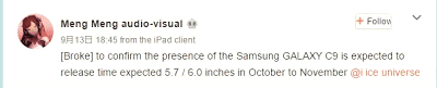Релиз устройства Samsung Galaxy C9 состоится в период с октября по ноябрь, об этом нам сообщает вот кто: