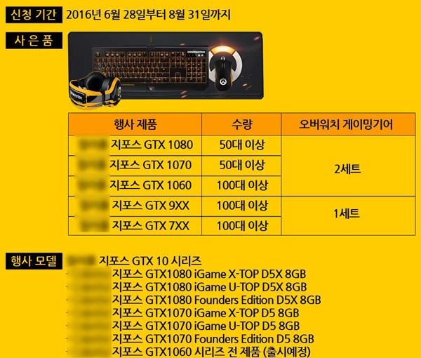 Как видно, GTX 1060 числится среди карточек, которые примут участие в промо-акции игры Overwatch, которая продлится до 31 августа.