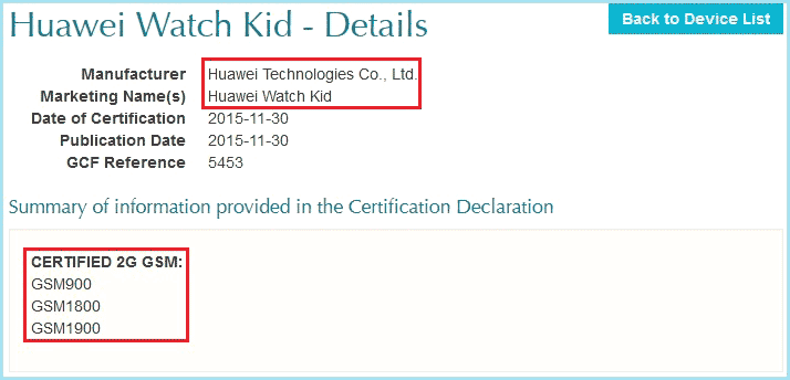 Стали доступны первые сведения об умных часах Huawei Watch Kid, как видно по названию, решение предназначено для детей. Пока о нём известно немногое - лишь то, что работать гаджет будет в сетях 2G (GSM 900-1900) и использовать Android Wear.