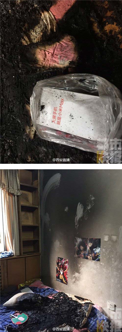 5 числа сего месяца в Китае в некоем месте недалеко от города Сиань (столица провинции Шэньси) случилось возгорание фаблета Xiaomi Max, вернее его батареи. Как и во всех случаях ранее, это неприятное происшествие произошло во время зарядки девайса (вполне возможно, что она была не фирменной, т.е. неподходящей по каким-то параметрам и потому опасной). Аппарат загорелся, и выбросив языки пламени, вызвал мини-пожар (пострадала стена помещения и площадь под фаблетом). К счастью никто из людей и животных не пострадал, сообщает хозяйка расплавившегося аппарата, Мао.