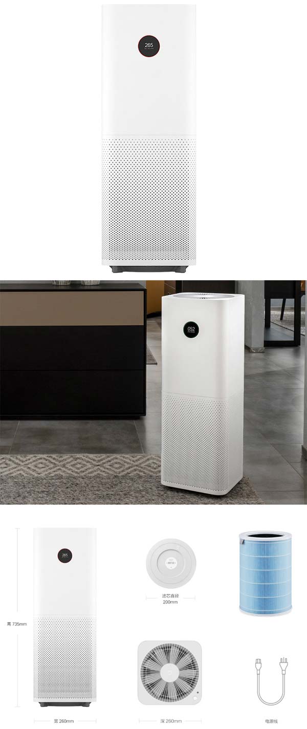 Вчера мы наблюдали анонс своего рода мультиварки Mi IH Rice Cooker, теперь посмотрим на новый очиститель воздуха. Изделие получило имя Mi Air Purifier Pro, оно является прямым наследником Mi Air Purifier 2, имеет размеры 260x735мм, обладает информационным OLED дисплеем, показывающим качество воздуха в реальном времени и некоторые другие данные, яркость экрана регулируется автоматически в зависимости от освещения в помещении.