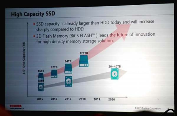 Итак, у компании Toshiba поистине наполеоновские планы, уже в 2018 году она планирует представить твердотельные накопители ёмкостью до 128 терабайт, новинки будут использовать QLS или же BiCS NAND флеш память, о скоростных спецификациях продуктов нам никто ничего не рассказывает, но даже если за 3 года прогресс не сдвинется с места и мы получим всё те же 500МБ/с на чтение и запись данных, очереди за 128ТБ SSD всё равно будут неимоверные... при правильной ценовой политике, конечно.