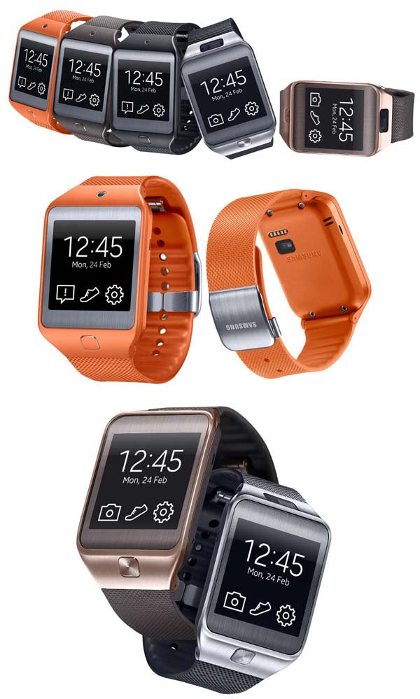 Фото и видео (в том числе в 720p) новинки позволяют снимать имеющаяся 2МП камера. Вес модели Gear 2 составляет 68 граммов, доступные цвета таковы: чёрный, коричневый и оранжевый. Gear Neo весит 55 граммов и идёт лишь в одном цвете - серый оттенок мокко (по-английски это звучит ужасно для русскоязычных людей - Mocha Grey hue), хотя некоторые источники утверждают, что и другие цвета (чёрный и оранжевый) доступны.