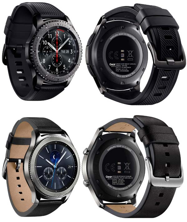 Решения от Samsung получили имена Gear S3 classic и Gear S3 frontier, устройства обладают 1.3" круглым Super AMOLED Always On экраном с разрешением 360x360 (278ppi), используют в основе некую 1ГГц 2-ядерную SoC, имеют по 768МБ оперативной памяти и 4ГБ встроенной флеш памяти, питаются от литий-ионной батареи на 380 мАч с поддержкой WPC беспроводной зарядки, время автономной работы равно 4 дням.