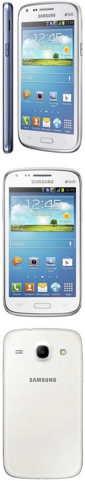 Сообщается, что в некоторых регионах будет продаваться вариант Galaxy Core, осанщённый двумя слотами для SIM карт (Duos), при этом первая SIM'ка будет поддерживать 3G HSDPA, а другая только 2G. Изделие Samsung весит 140 граммов, питается от батареи на 1800 мАч.