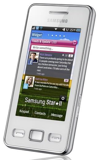 Samsung Star II представляет из себя небольшой телефон с сенсорным 3" экраном (разрешение 240x480), управляющийся посредством интерфейса TouchWiz 3.0 (тот же, что в Galaxy S). С его (телефона) помощью можно как просто болтать, так и слоняться по Интернет (есть поддержка WiFi) и делать фотографии посредством 3.2МП камеры. Большое значение в этой модели отдано совместимостью с различными соц.сетями, так что те, кто от них зависим, смогут не испытывать ломки (