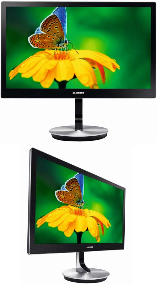 Имеющиеся видеовходы: DisplayPort, DVI-DL, HDMI (MHL), в корпус SB971 встроена 7-ваттная аудиосистема. Цвет корпуса изделия Samsung - чёрный / серебристый. Подставка новинки позволяет регулировать угол наклона экрана и его высоту (до 100мм).