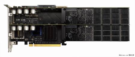 Сам SSD необычайно огромен, если сравнивать его с аналогичными PCIe решениями. Он выглядит как видеокарта и занимает два PCI слота. Подключение осуществляется по PCI-Express 2.0, что является необходимым требованием для достижения столь высокой передачи данных. В накопителе используется и MLC память (максимальная ёмкость SSD в таком случае - 5.7ТБ) и SLC (ёмкость - 2.56ТБ, при этом скорость записи 6ГБ/с, вместо 4.4, как у MLC-модели).