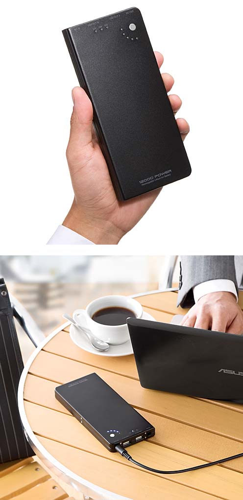 В отличие от девайса по ссылке выше, новинка в лице 700-BTL012BK является портативным зарядным устройством, причём весьма мощным, т.к. имеет ёмкость аккумуляторной батареи аж 12000 мАч, тип - литий-ион-полимерная. Учитывая, что у многих смартфонов батареи на 1700-2000 мАч, новинка от Sanwa способна зарядить таких устройств 5-6 штук.