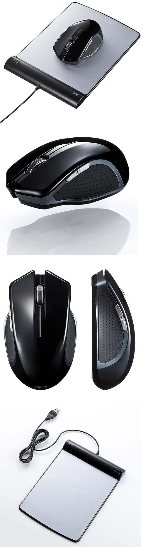Длина кабеля коврика - 1.4 метра, связь с ПК осуществляется на частоте 2.4ГГц, разумеется без крошечного беспроводного USB ресивера не обошлось... шутка, он не нужен, ибо его функция возложена на всё тот же коврик. Разрешение Blue LED сенсора аппарата составляет 1200 точек на дюйм. Устройство от Sanwa работает без установки особых драйверов.