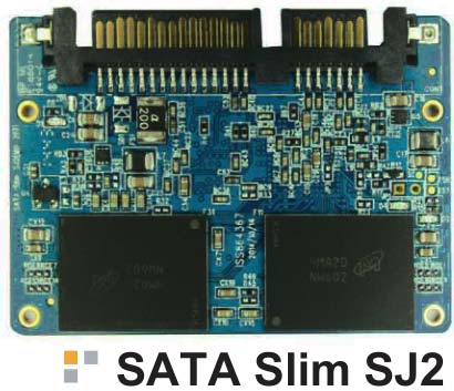 Новинка именуется SATA Slim SJ2, интерфейс подключения - SATA 6Гб/с, форм-фактор - SATA 22-пин, ёмкость накопителей серии составляет 8 - 128 гигабайт, размеры: 54x39x4мм. Скорость передачи данных достигает 480МБ/с на чтение и 400МБ/с на запись, время доступа к данным - 0.1мс.