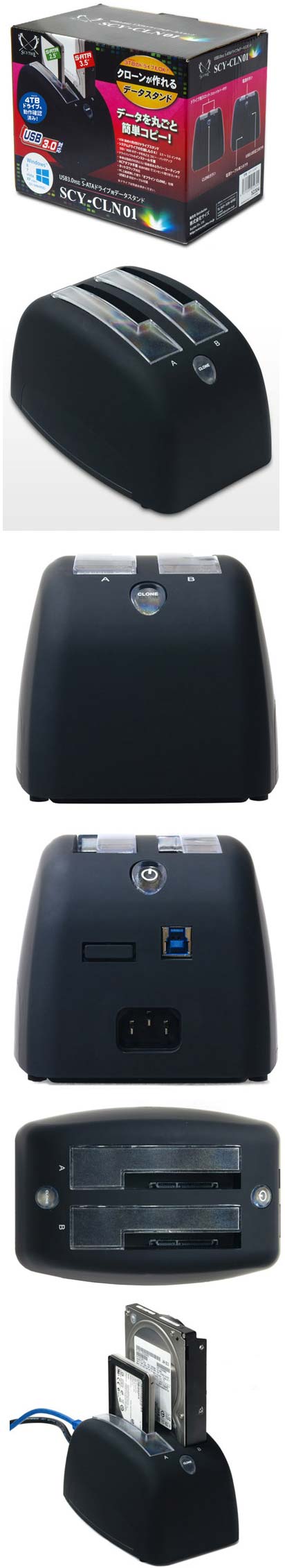 Данная док-станция обладает функционалом дубликатора, т.е. может без участия ПК создать точную копию содержимого одного накопителя и поместить её на другой, есть конечно же и ограничения - ёмкость исходного HDD/SSD должна быть меньше или равной ёмкости целевого. Питается новинка от адаптера питания, идущего в комплекте с устройством, USB 3.0 кабель также поставляется вместе с SCY-CLN01.