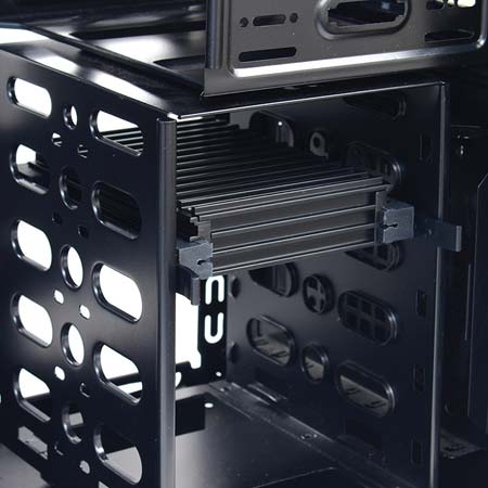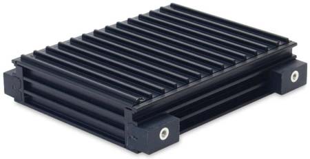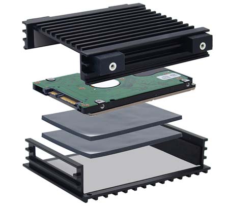 Суть Himuro Mini ровно такая же, как у его полноразмерной версии (что была выпущена года эдак 3 назад и предназначалась для 3.5" винчестеров). Внутрь устройства, представляющего собой алюминиевую коробку с прокладками, укладывается накопитель, благодаря чему он защищается от механических повреждений, меньше шумит и передаёт своё тепло на Himuro Mini, который играет роль радиатора. Новинка может работать с HDD и SSD толщиной не более 15мм, занимает устройство один 3.5" слот в ПК, крепится там при помощи резиновых эээммм...штуковин (дабы поглощалась вибрация от винчестера).