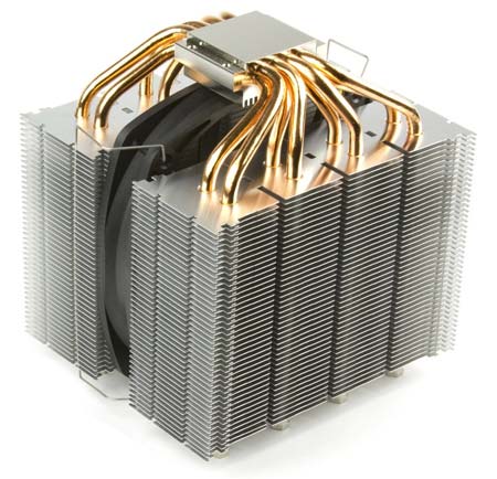 Прежде чем перейти к финансовой стороне данной новости, давайте поговорим о характеристиках груды металла. Кулер имеет габариты 130х143х160мм и вес 1150 граммов. В его основе восемь 6мм теплотрубок, большое количество алюминиевых пластин и медное основание (с алюминиевым радиатором на нём). В комплекте с этим двухбашенным радиатором дают 140мм вентилятор, что издаёт шум от 12.4 до 36.4 децибел (скорость вращения от 470 до 1900 оборотов в минуту), при воздушном потоке 35.36-94.4 квадратных фута в минуту. Заявлена полная совместимость с Intel LGA 775/1155/1156/1366 и AMD Socket AM2/AM2+/AM3. Охлаждать такая громадина должна довольно хорошо, вот бы почитать тесты!