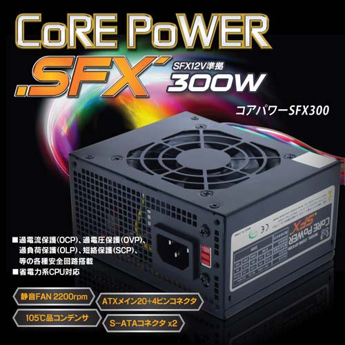 Решение называется CorePower SFX 300W, как можно понять, оно имеет форм-фактор SFX, а значит предназначено для очень компактных компьютеров. Размеры аппарата составляют 125x63x100мм, мощность японской новинки - 300 ватт.