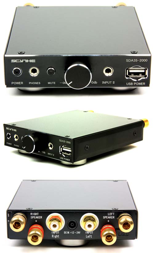 . В основе аппарата лежит Max 98400A IC (усилитель класса D от maxim integrated), выдающий по 20 ватт на канал, т.е. суммарно до 40 ватт, поддерживаемая частота дискретизации - от 20Гц до 20кГц. На фронтальной части аппарата производства Scythe находится регулятор мощности, поворачивая который можно настроить громкость под себя.