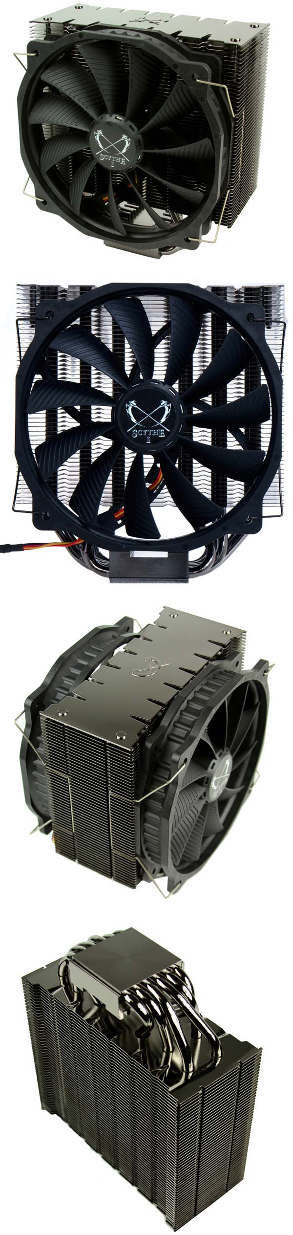 Кодовое имя продукта - SCASR-1000SE. Это конструкция "башенной" формы, габариты которой без учёта вентилятора составляют 145x161x65мм, весит система охлаждения 750 граммов. На радиаторе установлен 140x140x25мм вентилятор Scythe Glide Steam, работает который на скорости от 500±300 до 1300 оборотов в минуту.