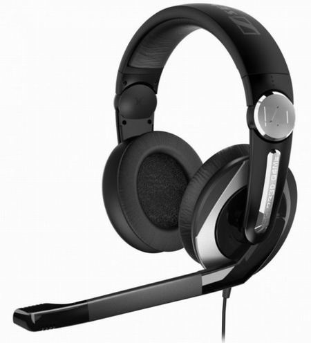 Первая новинка, PC 360, обладают мягкими бархатными ушными подушками, закрывающими уши слушателя целиком, тем самым препятствуя проникновению посторонних звуков извне (дабы последние не искажали восприятие аудио-материала). Имеется и микрофон с функцией шумоподавления (к слову - он есть во всех четырёх моделях) и встроенный регулятор громкости. Тут и далее - никаких характеристик мы не услышим, так что чисто по описанию, сложно будет найти разницу между продукцией Sennheiser ![]()