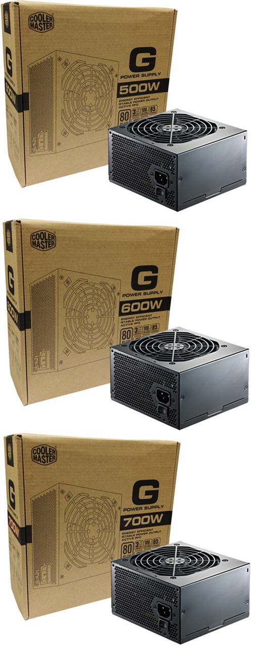 Упаковка новых изделий от Cooler Master сделана из переработанной бумаги, так производитель заботится об окружающей среде. Все блоки питания серии G имеют ряд защитных механизмов: OVP, SCP, OPP и OTP, плюс у них активная коррекция фактора мощности (APFC). По линии +12V G500 выдаёт 38А/456W, G600 - 48А/576W, а G700 - 55А/660W.