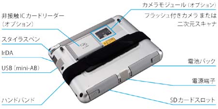 Габариты устройства: 190х163х23мм, вес - 600 граммов. Диагональ оснащённого светодиодной подсветкой сенсорного экрана - 6.5", разрешение - 640х480. Процессор девайса - i.MX27L 32bit RISC (400МГц), оперативной памяти установлено 256МБ (DDR), 512МБ флеш памяти, имеется 1.3МП фронтальная камера и 2МП задняя (с LED-вспышкой), устройство оснащено SD/SDHC слотом, имеет поддержку Bluetooth 2.0, IrDA, WiFi и 3G, за дополнительную денежку планшетник оснастят опциональным IC картридером. Точная версия предустановленной ОС - Windows Embedded CE 6.0 R3.