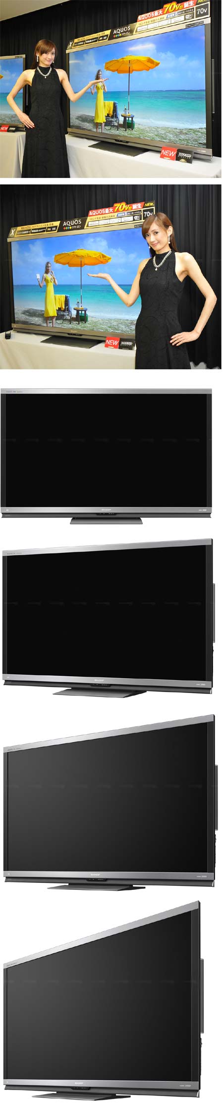 Кстати о роскоши - Sharp представила в Японии 70 дюймовый телевизор, само-собой с поддержкой опостылевшего 3D. Новинка создана на базе ЖК технологии, использует светодиодную подсветку экрана, которую в Японии обозвали Mega Bright Technology - видимо для привлечения простого люда к такой продукции. Я, правда, сомневаюсь, что у классических обывателей есть денежки на такие телевизоры, но об этом позже.