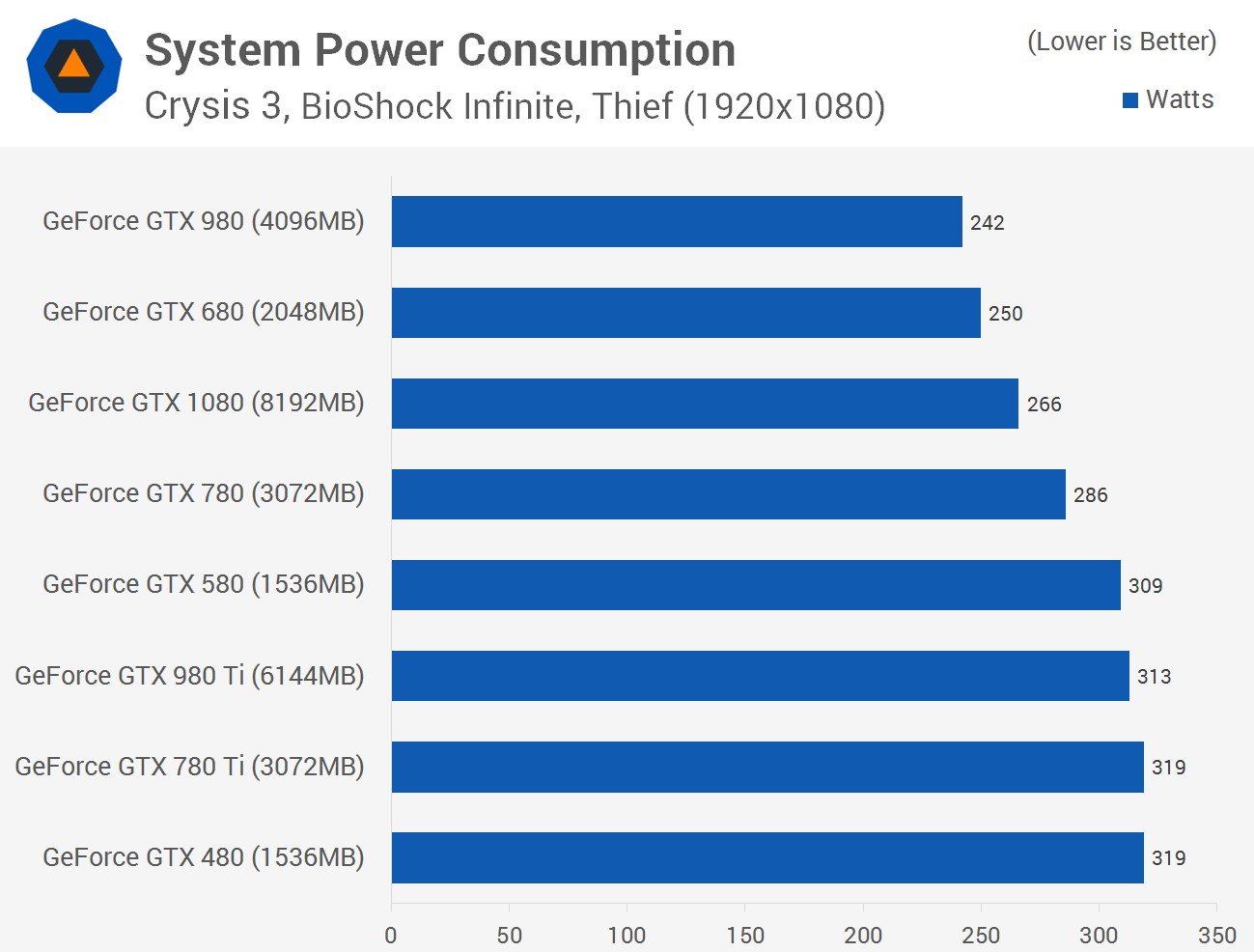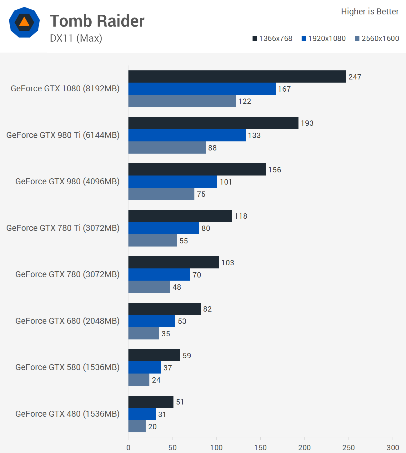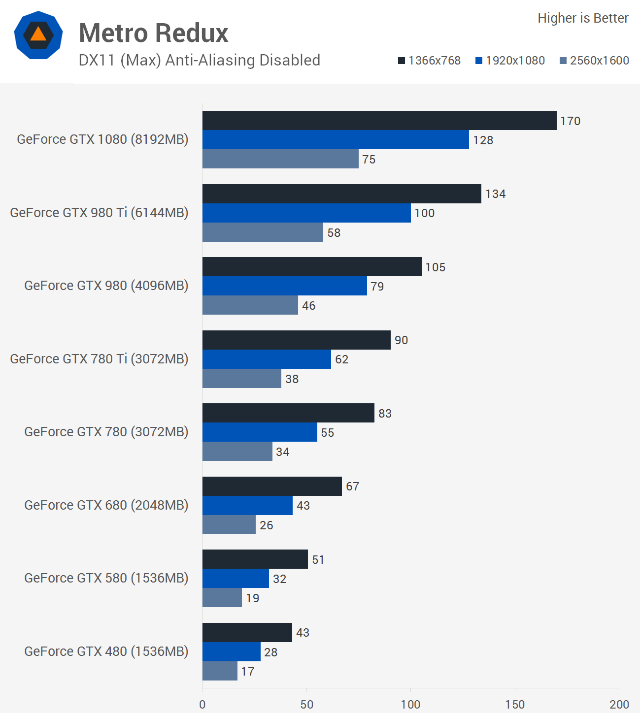 В тестах принимают участие вышедшие с марта 2010 по май этого года графические адаптеры, преимущественно самые быстрые в линейке (не считая различных Titan): Fermi (GTX 480 и GTX 580), Kepler (GTX 680 и GTX 780), Maxwell (GTX 980 и GTX 980 Ti) и Pascal (GTX 1080).