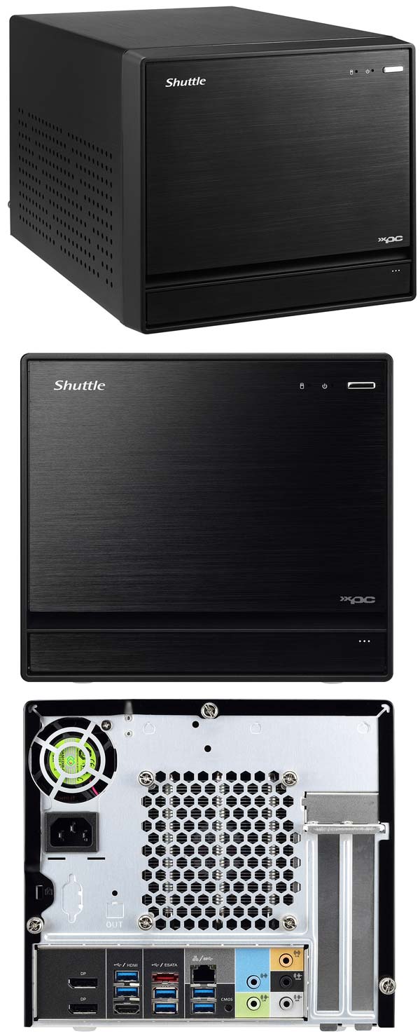 Изделие называется SZ170R8, относится к семейству XPC, имеет размеры 332x21.6x19.8мм, весит 3.5КГ. Внутри решения трудится системная плата на базе чипсета Intel Z170, в качестве процессора можно использовать практически любую модель с сокетом LGA1151, лимит по TDP равен 95 ваттам. Устройство обладает алюминиевым корпусом, его цвет - чёрный, на боковых стенках имеется перфорация для улучшения воздухообмена внутри ПК.