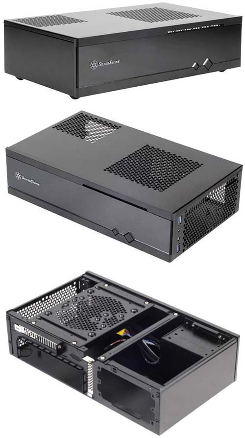 Напомню спецификации поступившего в продажу изделия уважаемой многими компании SilverStone: корпус называется Milo ML05, он предназначен для системных плат mini-ITX, иными словами - отлично подойдёт для создания HTPC. Данное шасси сделано из оцинкованной стали (SECC) и АБС пластика, габариты изделия составляют 350x99x204мм, вес равен 2.1КГ, внутренний объём - 7 литров.