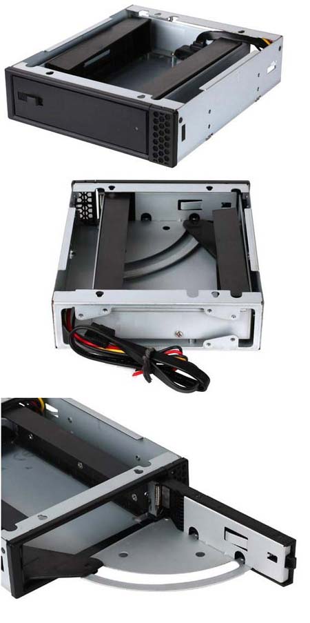 Установка накопителя в 5.25" отсек не значит обычное его там закрепление, т.е. нам предлагают не просто адаптер-переходник, а нечто большее. Подключаемый в FP57 винчестер/SSD будет обладать возможностью горячей замены, т.е. выключать ПК перед выниманием или же внедрением накопителя будет вовсе необязательно. Новинка обладает съёмным пылевым фильтром, устанавливается без применения инструментов и работает со всеми SATA-устройствами, каких-то ограничений по ёмкости девайсов хранения данных, к счастью, не предусмотрено.