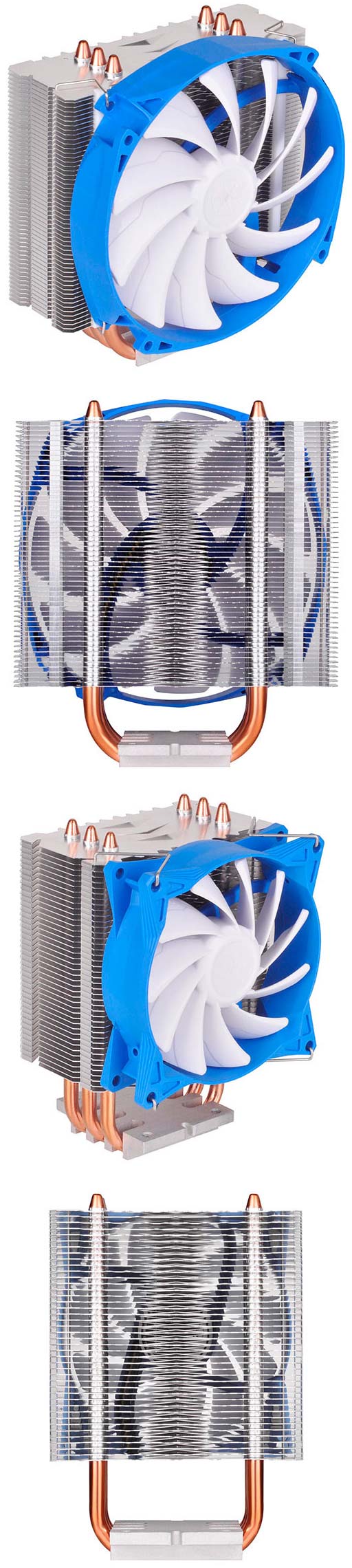 Вторая новинка имеет более скромные габариты: 92x50x134мм, весит 285 граммов, обладает тремя теплотпубками с технологией прямого контакта с теплораспределительной крышкой процессора. Вентилятор используется 92мм, он функционирует на скорости от 1500 до 2800 об/мин, воздуха гоняет 49.5 кубических футов.