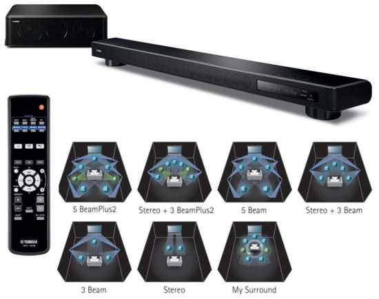 Японская компания представила эдакую длинную колонку YSP-2200 (и 100-ваттный сабвуфер к ней), состоящую из 16 динамиков, именно она позволяет симулировать многоканальный звук. Т.е. не нужно расставлять в комнате 7 колонок и сабвуфер, достаточно одной YSP-2200 (и её "саба") и качественный объёмный звук обеспечен. На деле ведь мало людей являются аудиофилами и большая часть просто не отличит настоящий объёмный звук от его псевдо-версии.