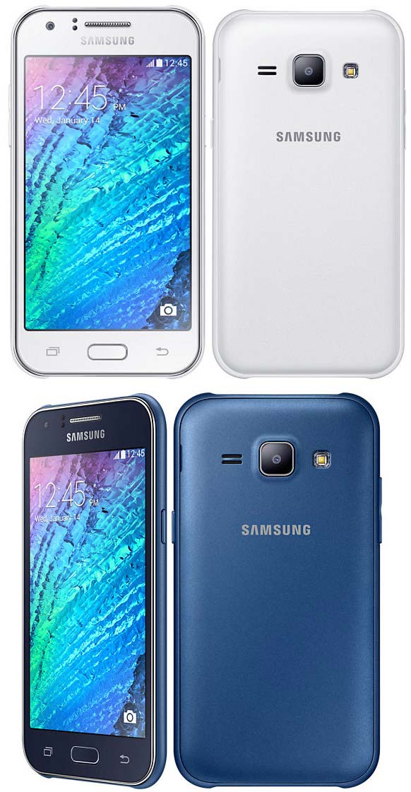 Доступные цвета изделия Samsung: чёрный, синий и белый. Стоимость Galaxy J1 (SM-J100H) почему-то не называется.