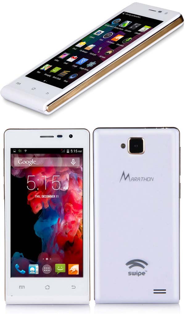 Изделие вполне обыденное, знатными спецификациями похвастаться не может, но вот батарея на 4000 мАч выделяет смартфон Swipe Marathon среди прочих устройств уровня ниже среднего. Новинка обладает 4.5" IPS экраном с разрешением 854x480, имеет 1ГГц двухъядерную SoC, 512МБ оперативной памяти и 4ГБ расширяемой на 32ГБ флеш памяти.