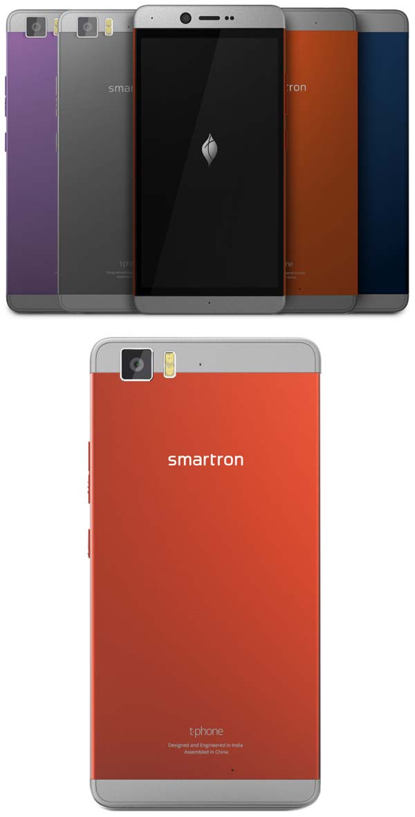 Итак, что же представляет собой 5.5" умный телефон Smartron t.phone? Устройство может похвастаться AMOLED экраном с защитой Corning Gorilla Glass 3, быстрой 8-ядерной SoC Snapdragon 810 с графикой Adreno 430, 4ГБ оперативной памяти LPDDR4 и 64ГБ расширяемой (с помощью microSD носителей) флеш памяти.