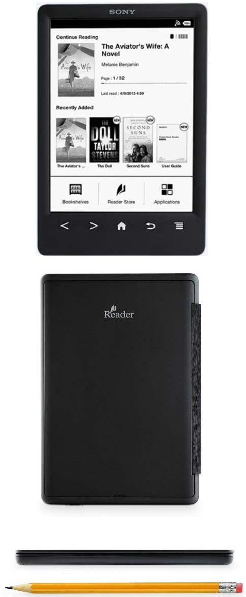 Аппарат получил название PRS-T3, новинка основана на технологии электронных чернил, утверждается, что разрешение экрана велико, а качество столь высоко, что отличить изображение от обычном бумаги будет сложно. Сомневаюсь в правдивости этих заявлений, ведь перед нами 6" сенсорный дисплей с разрешением 1024x768, способный отображать до 16 градаций серого.