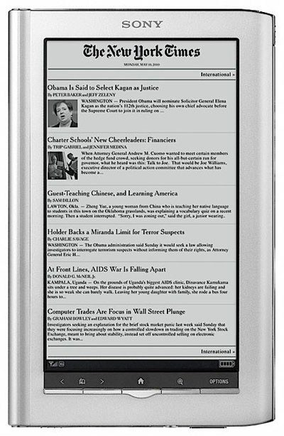 Изменениям подверглись три модели e-book reader'ов от Sony: 5-и дюймовый PRS-350 Pocket Edition, 6-и дюймовый PRS-650 Touch Edition и 7-и дюймовый PRS-950 Daily Edition. Устройства стали тоньше, легче, а самое главное - у них улучшили экран, теперь у него более шустрое время отклика и контрастность на уровень выше (из-за чего читать книги станет удобнее, особенно при солнечном свете). Также производитель добавил улучшенную поддержку тач-управления устройством, стилус идёт в комплекте с "читалками". Ёмкость накопителей - 2ГБ, кому этого мало, те смогут вставить карточки памяти SD или же Memory Stick нужной ёмкости. В самой дорогой из троицы, PRS-950 Daily Edition имеется поддержка WiFi и 3G.