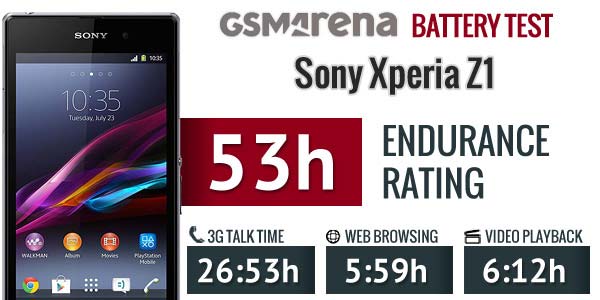 Аппарату удалось побить всех конкурентов лишь в одном тесте - рекордно долгое время работы в режиме разговора, во всех других режимах изделие показало себя середнячком. Общий рейтинг смартфона Sony Xperia Z1 составил 53 часа, это значит, что если не переусердствовать с видео и просмотром Web страниц, аппарат не выключится за один день, а проработает достаточно долго.