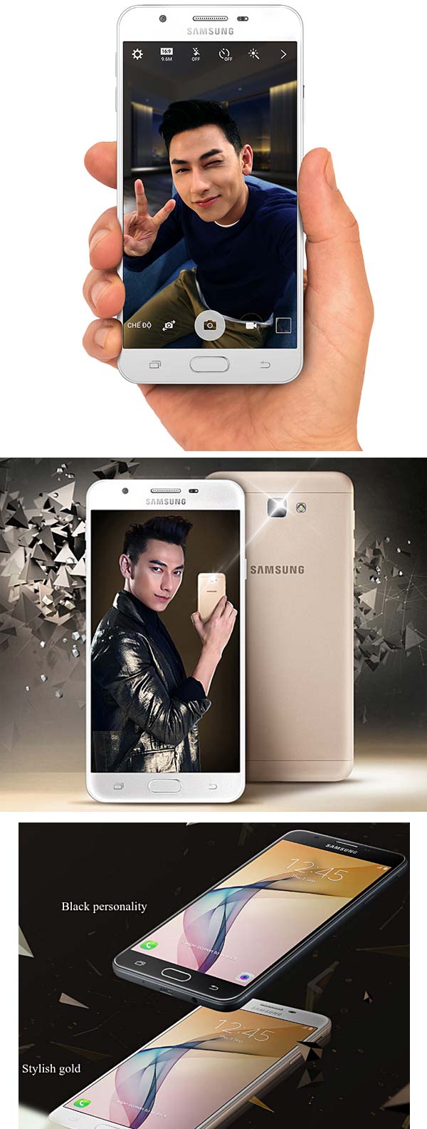 Местная знаменитость (видимо) позирует с Samsung Galaxy J7 Prime