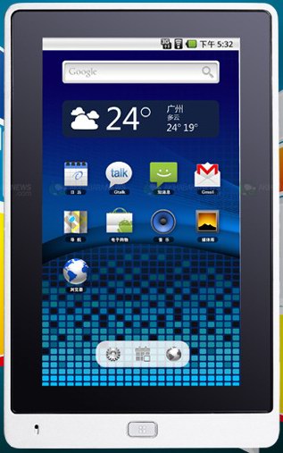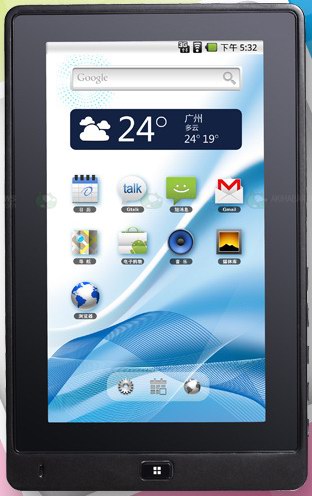 Итак, перед нами планшетный компьютер, причём довольно компактный. Размер дисплея - 7 дюймов, разрешение - 800х400, толщина корпуса - всего лишь 6.5мм. Внутри устройства трудится 624МГц процессор (причём он же - и GPU и DSP) от ARM, имеется поддержка 3G и Wi-Fi, а также возможность просмотра видео в разрешении 720p (можно вывести сигнал на телевизор, т.к. имеется HDMI выход). Время работы от батареи - 5 часов, девайс снабжён акселерометром. Операционная система - вездесущий Android, правда версии 2.1.