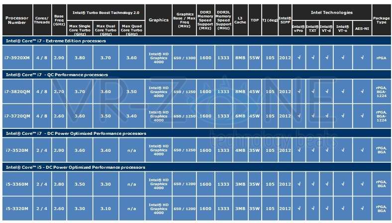С сайта VR-ZONE поступили слайды со спецификациями процессоров семейства Ivy Bridge, предназначенных для мобильного сегмента рынка.