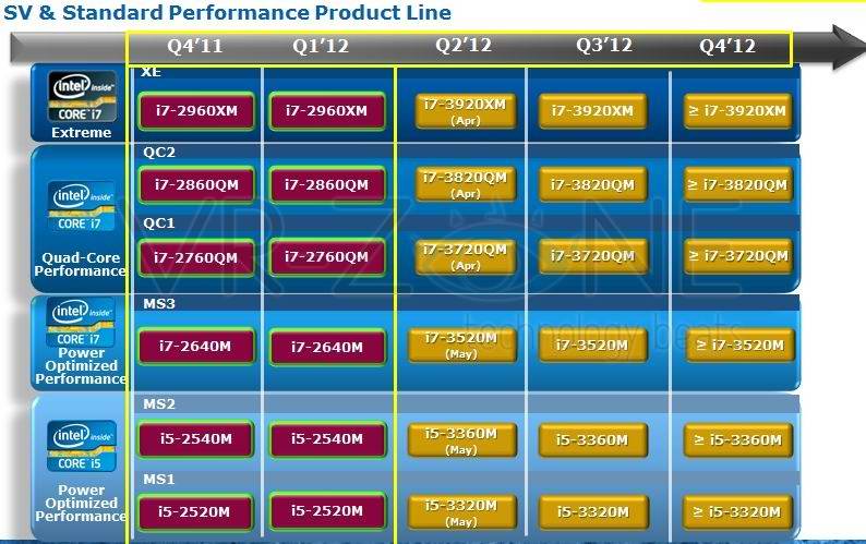 А вот и Roadmap новых мобильных решений Intel, хотя на нём затрагиваются и некоторые процессоры семейства Sandy Bridge: