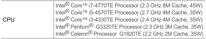 Новинки именуются Celeron G1820TE, Core i3-4330TE и Pentium G3320TE, все они построены на базе архитектуры Haswell, имеют по два ядра, но количество потоков у Core i3-4330TE равно четырём, а у двух других процессоров лишь двум. G1820TE работает на тактовой частоте 2.2ГГц, имеет 2МБ кеш третьего уровня, когда как у G3320TE частота выше на 100МГц, а кеш на 1МБ больше.