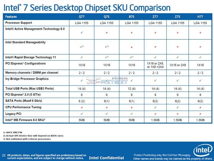 Итак, 7-я серия чипсетов Intel сформирует платформу Maho Bay, что будет служить верой и правдой простым юзерам (т.е. тем, кому SB-E на пару с IB-E не нужны или по каким-то причинам не подходят). Всего запланировано три PHS - это Z77, Z75 и H77, чтобы долго не описывать что к чему, достаточно провести аналогию с ныне существующими решениями серии Z6х и H6х и всё станет ясно. Подробно почитать о каждом из PCH можно на слайдах ниже, английский знать для того, чтобы понять о чём идёт речь, вовсе необязательно, ибо всё максимально доступно и наглядно: