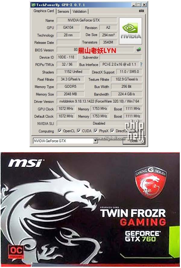 Появился скриншот из GPU-Z, на котором запечатлены спецификации готовящейся к релизу на следующей неделе видеокарты GeForce GTX 760... по крайней мере так многие думают.