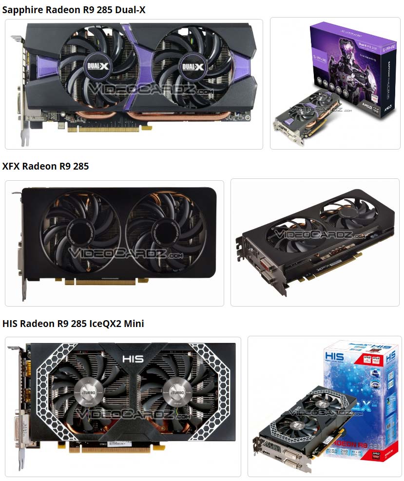 Ниже показаны некоторые варианты Radeon R9 285, ничего сверхъестественного, как можно понять: